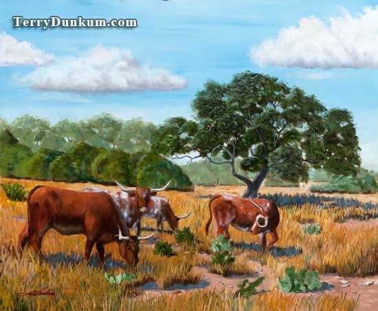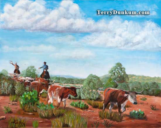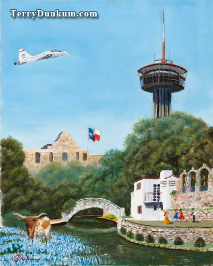 Terry is currently studying art with Bill Scheidt at Jay Hester's Highland House Studio. Terry, who is a member of The New Braunfels Art League, has had paintings displayed in Durango, Colorado, at local banks and in several local galleries. He has a number of finished works for sale as well as giclée prints. He also does custom paintings on a commission basis.